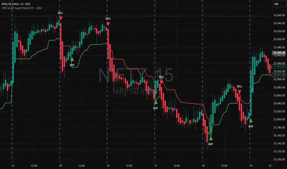 CRR Smart SuperTrend HTF 15M is a trend bias indicator specially engineered for fifteen minute charts
