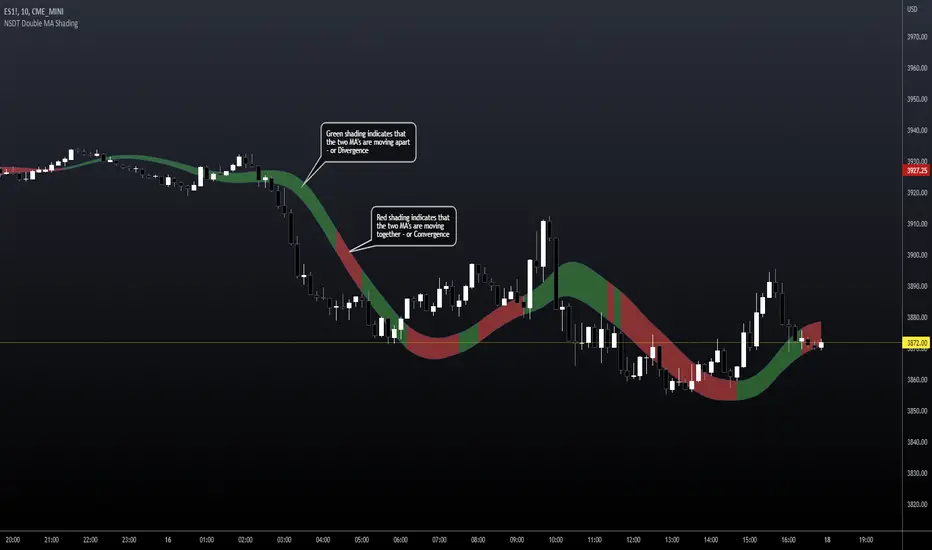 If the two are moving apart (Divergence), the shaded area between them turns Green.