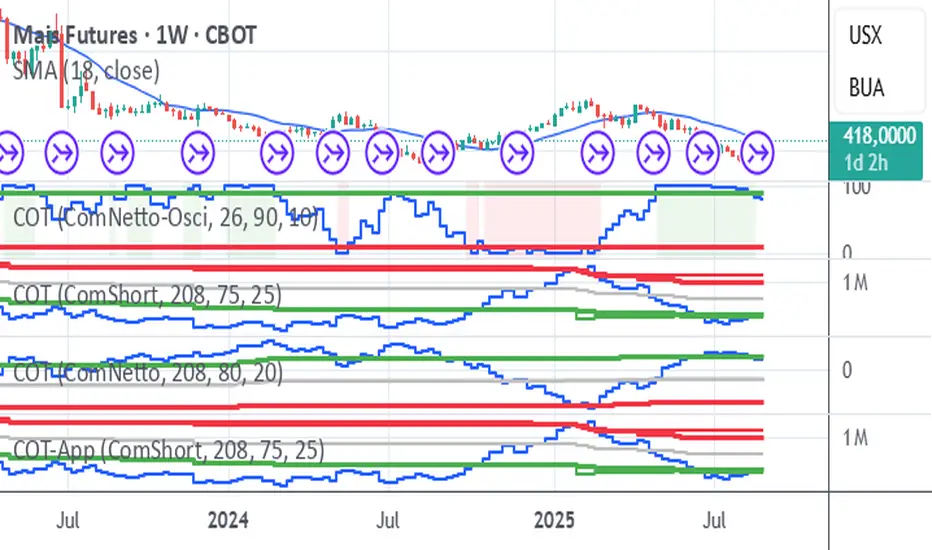 //the COT types commercial netto, commercial short and commercial netto generate potential trading signals if the curve of type of COT data runs into the defined long or short extreme area
