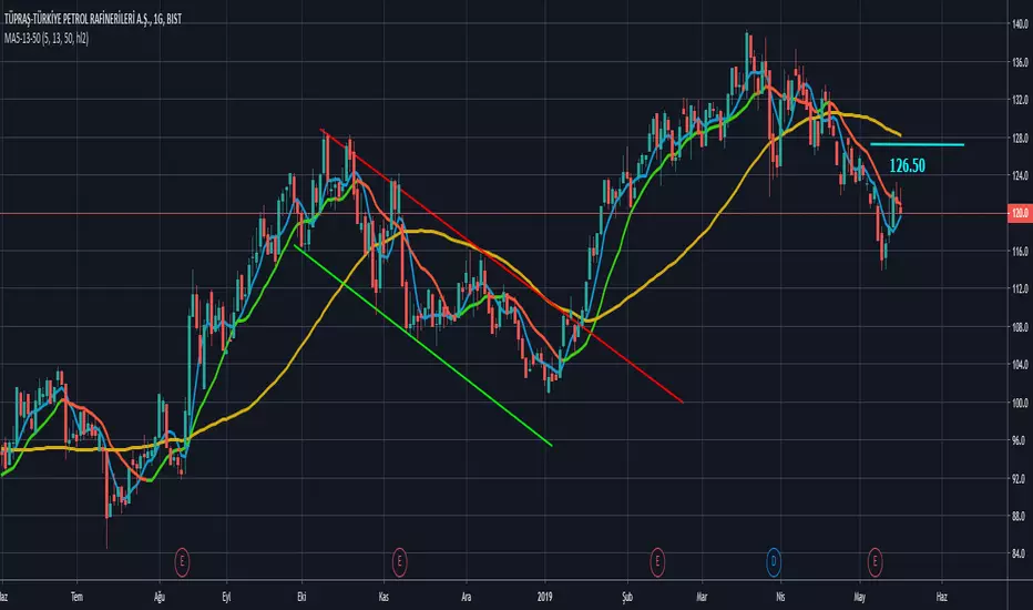 Umit Uslucan'ın [ * uslucanbudu ] MA5-13-50 stratejisine göre hareketli ortalamaları çiziyor, MA13 değeri yükselişte ise yeşil inişte ise pembe çiziyor.