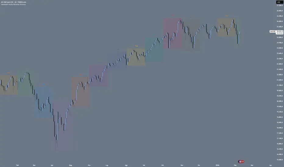 Sakalau02 Yearly Monthly Sessions is an advanced time-mapping tool designed to highlight monthly cycles throughout the year. The indicator converts raw price data into a clean visual structure, using arrays for optimized performance.