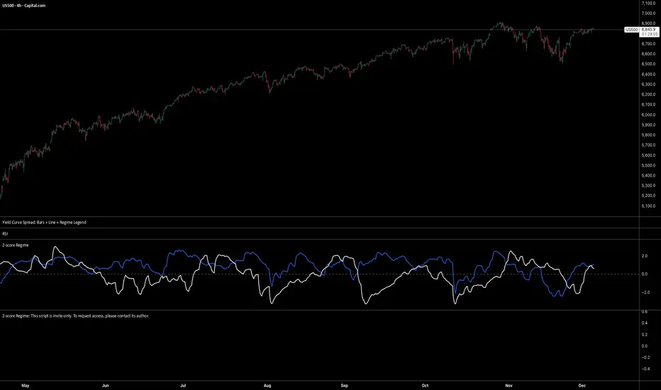 The indicator plots the two z-scores as simple lines for clear regime comparison.