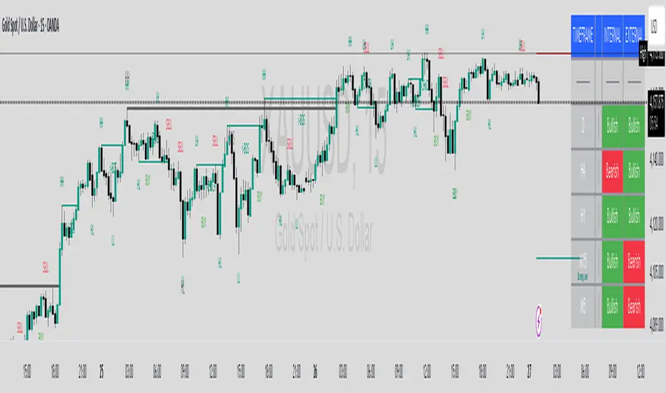 Ultimate Market Structure + MTF Dashboard is a fully-automated Smart Money Concepts (SMC) market-structure indicator designed to give traders extremely clean and accurate structural mapping on any timeframe.