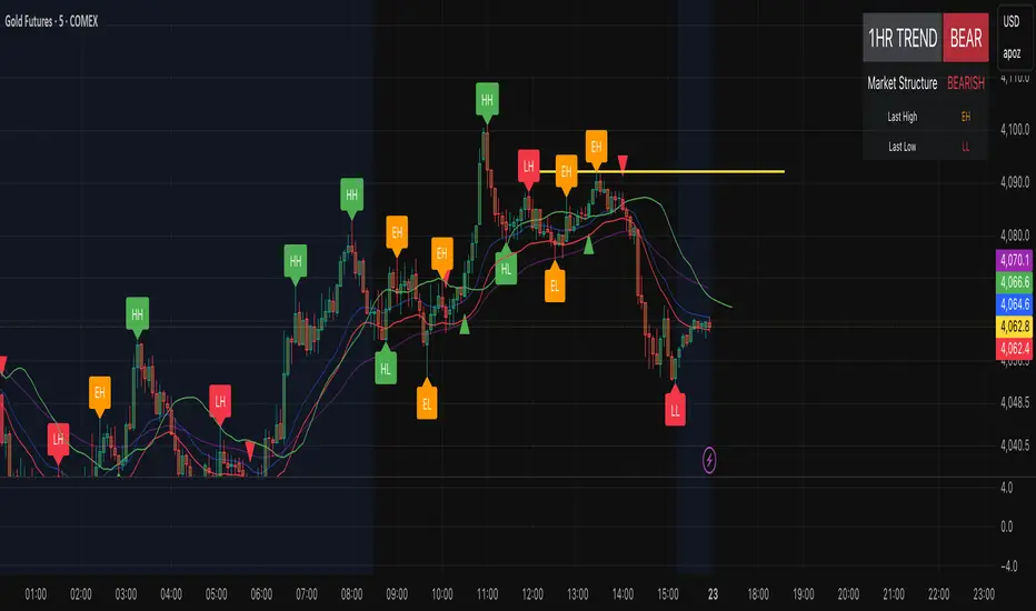 Note: This indicator combines multiple timeframe analysis, market structure, and momentum confirmation. Always use proper risk management and confirm signals with your trading strategy.