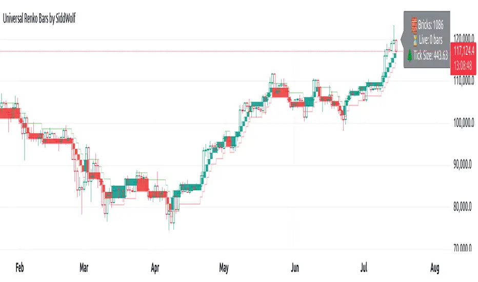 ⏳ Live: How many chart bars the current live brick has been forming. These bars forms the Renko bricks that aren't confirmed yet. Live = 0 means the latest renko brick is confirmed.