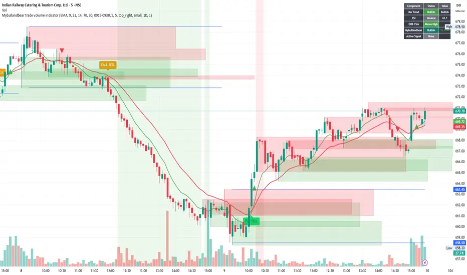 The indicator consolidates Trend (MA), Momentum (RSI), Breakout (ORB), and Volume (CVD) into a single dashboard, giving you an objective "Green" or "Red" bias.Mybullandbear View -This specific component tracks whether buying or selling volume is dominant for the day. It helps you avoid false breakouts—if price goes up but itis Red (Bearish), it's likely a trap.