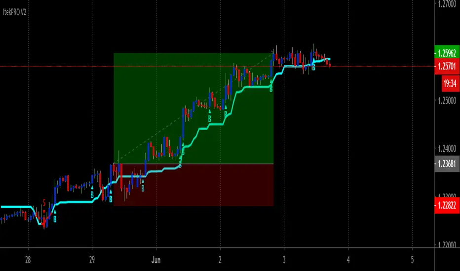 Once Itek PRO V2 indicator has spotted an entry point, it clearly displays a Buy or Sell Signal on your chart, showing you exactly where possible entry to continue with the trend or start a new one.
