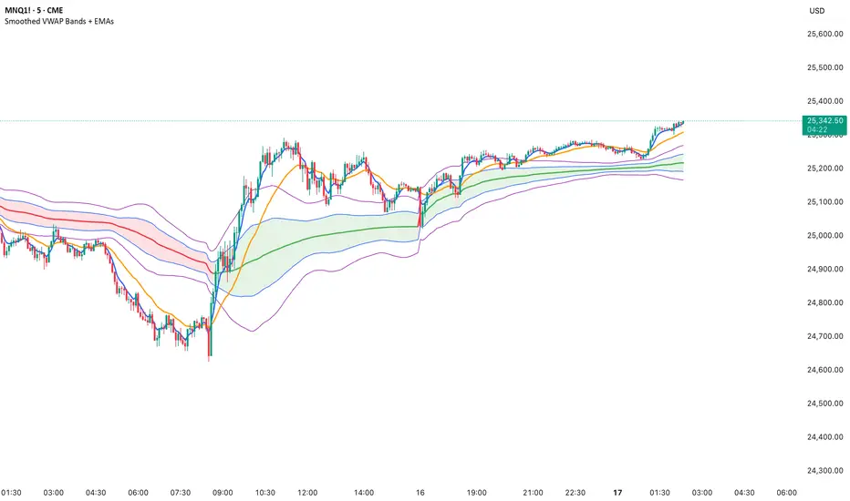 Here’s a cheat sheet for trading the Smoothed VWAP Bands + EMAs that shows safe entry zones and trend alignment clearly.
