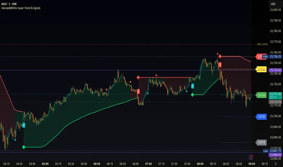 Catch trends, mark key levels, and manage trades — all in one tool. Harvey’s Super Trend & Trade Signals blends a Smart Trend Average, ATR-tightened trails, and auto-plotted trade levels to keep you ahead of the move and in control.
