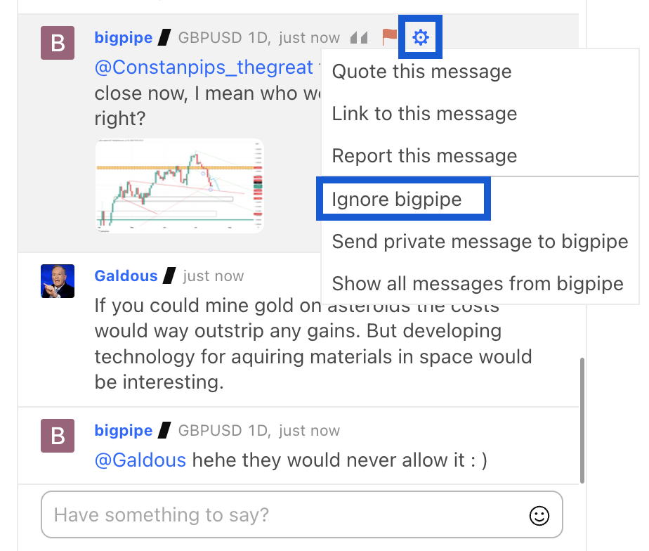 Jeżeli nie interesują Cię wiadomości innego użytkownika, ponieważ uważasz, że są nieinteresujące lub denerwujące, możesz dodać tego użytkownika do listy ignorowanych. Gdy to zrobisz, nie będziesz już więcej widzieć żadnych prywatnych ani publicznych wiadomości od tego użytkownika. Lista ignorowanych jest funkcją czatu i dotyczy tylko wiadomości: nadal będziesz widzieć komentarze, pomysły lub skrypty publikowane przez użytkowników z listy ignorowanych.