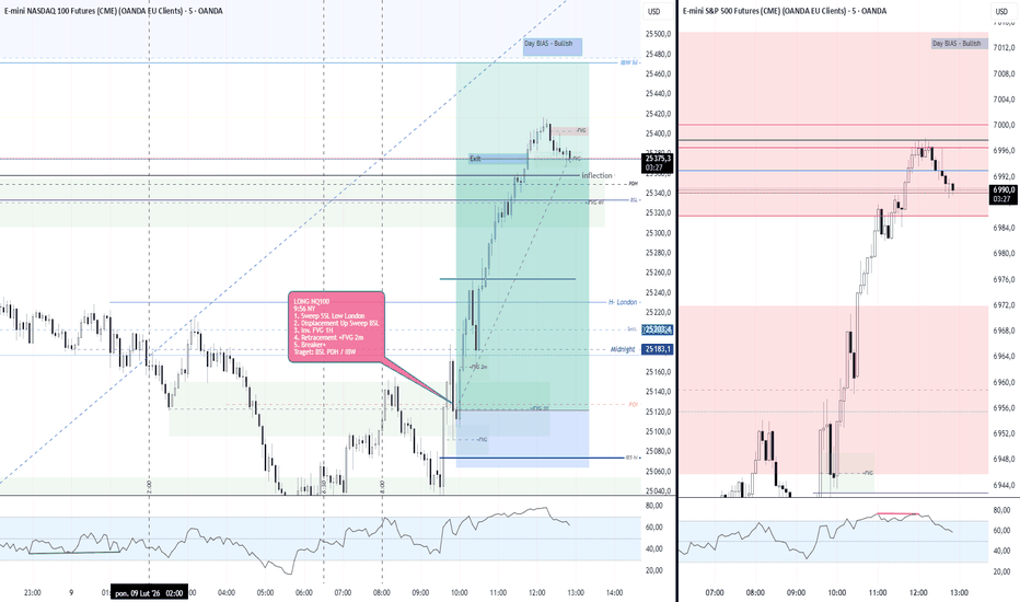 LONG NQ100, 2026-02-09, 09:56 (Nowy Jork)Model wejścia (ICT)